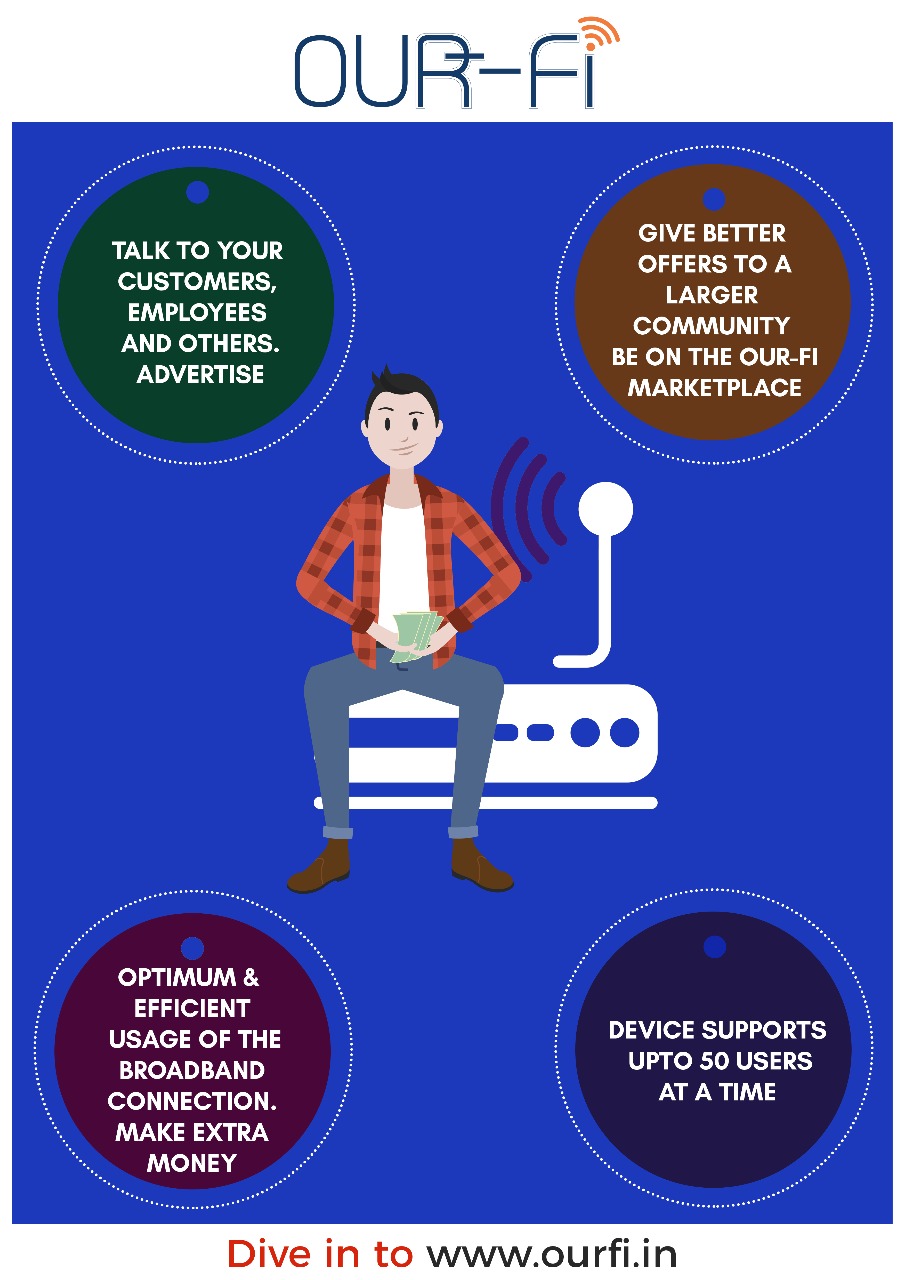 OUR-Fi was born out of a vision to get consumers, home-owners, businesses and ISPs come together to help make the world's largest WiFi network. We believe in a future where people connect to millions of WiFi hotspots - seamlessly and securely, everywhere. While you are on our network, not only do you have access to several hotspots you also get a ton of offers that are suited to your needs & lifestyle.